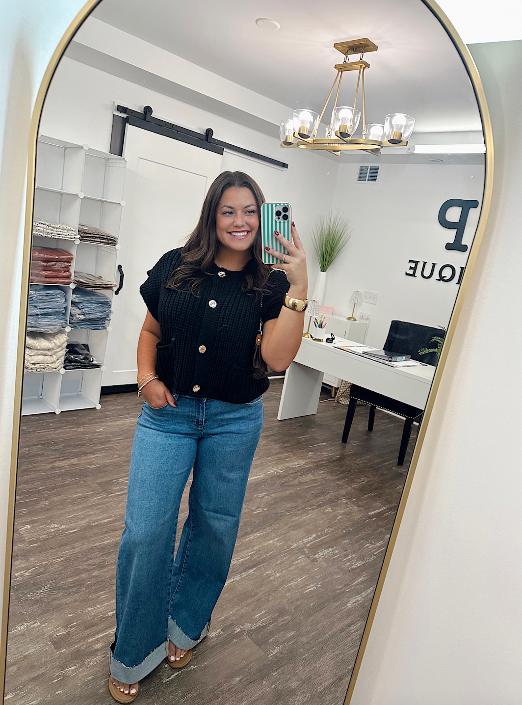This short sleeve, knit sweater with gold button accents is a stylish staple for the season. Made from a warm, thick knit, it’s designed to keep you comfortable as the weather cools. The gold buttons bring a touch of elegance, making it easy to dress up or keep casual. Pair it with jeans or tailored pants for a versatile look you’ll reach for again and again!