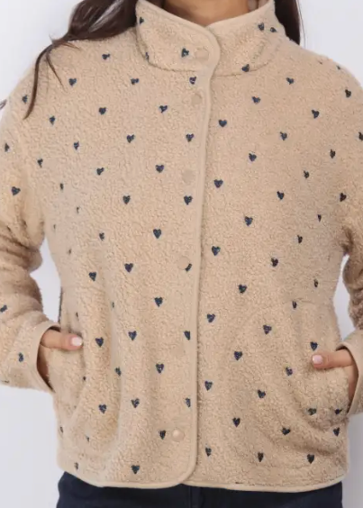 Button up sherpa with embroidered heart detailing!